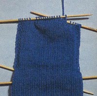 Наберите данное количество петель и сделайте круг. Петли равномерно распределяются по 4 спицам, и спицы нумеруются от начала круга с 1-й по 4-ю в такой последовательности, в какой они вступают в работу: спица 1 находится слева от начала круга, спица 4 — справа. Дальше вяжите резинку. Связав несколько санти-метров, переходите к рисунку голенища. В носках на фотографии голенище связано лицевой гладью (= каждый круг лицевыми).