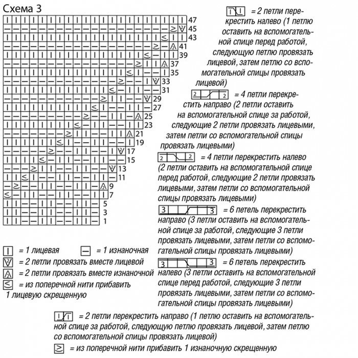 Вязать согл. схеме 3. Выполнить 1 раз 1–48-й ряды.