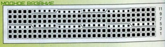 Набрать на спицы №4 112-120 петель и связать 12 рядов резинкой. Затем поменять спицы на № 5 и вязать узором из кос согласно схеме оставляя между косами оставлять 4 изнаночных петли. Вяжите до нужной длины,затем снова перейдите на спицы № 4 и вяжите опять 12 рядов резинкой 1 / 1.
