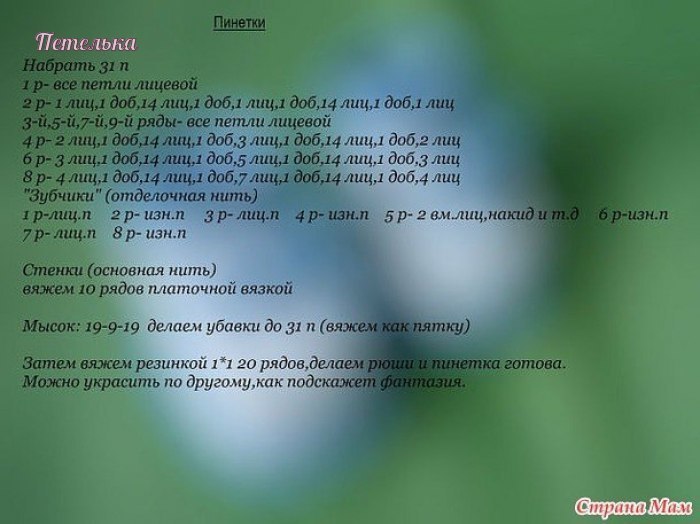 2-ой и 4-й р., : изнаночные петли.