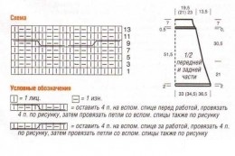 Резинка, спицы № 5: четное число петель. Вязать между кром. попеременно 1 лиц., 1 изн. Все дальнейшие узоры вязать на спицах № 6.
