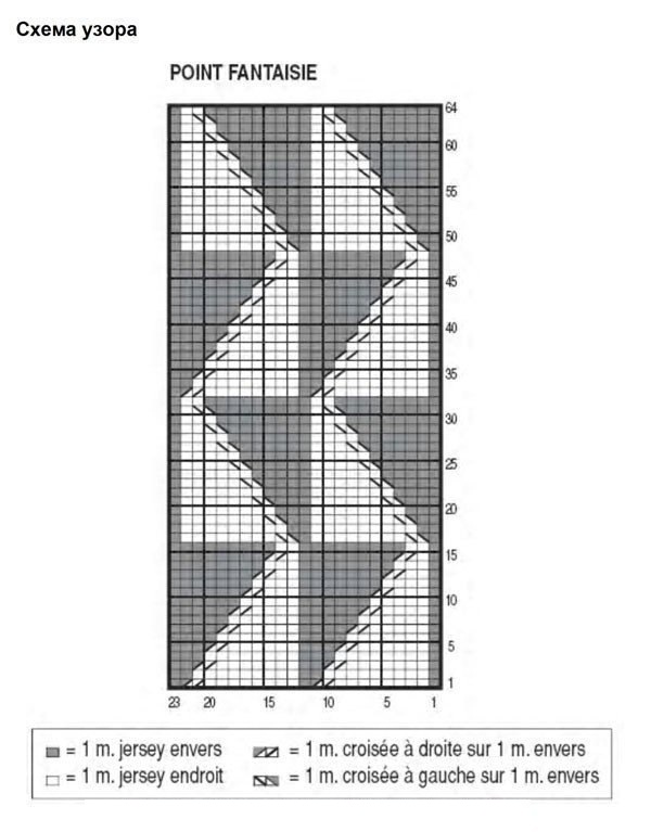 В процессе вязания соблюдаем плотность работы: 25п. х 31р. = 10х10 см (основной фантазийный узор, спицы №3,5).