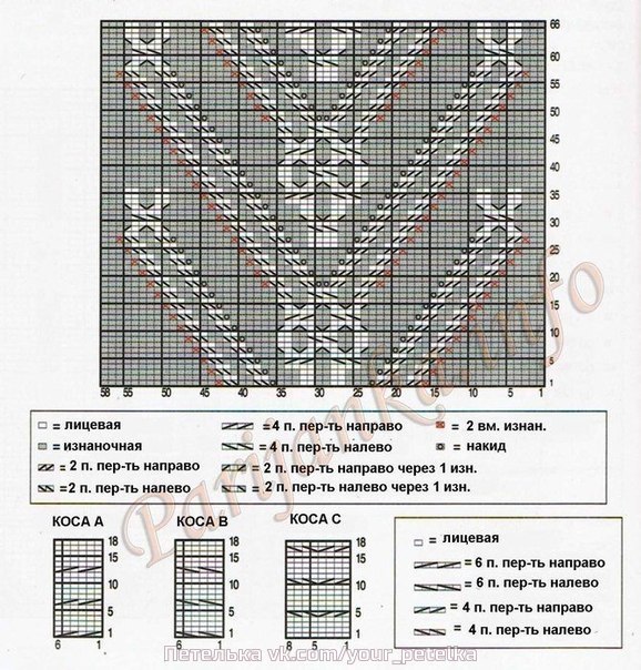 - фантазийный узор – см. схему! спицы 5 мм, после 66-го ряда схемы повторять с 7-го ряда.