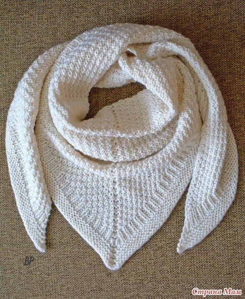 Этот узор имеет свойство стягивать полотно, поэтому со спиц шаль будет больше напоминать корявенький ромб, шаль необходимо хорошенько увлажнить и растянуть.