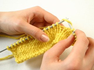 Для того чтобы провязать две петли вместе, нужно ввести рабочую спицу слева направо в пару петель и протянуть нить от клубка через них так, как это делается для выполнения лицевой. Если выполнить это, продев спицу справа налево, получится одна скрещенная. Можно также провязать две петли лицевой, предва-рительно перевернув первую из них, расположенную на левой спице.