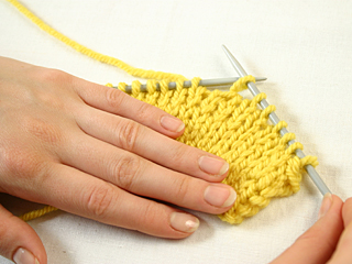 То же самое делают, когда вяжут изнаночный ряд, но нить теперь протягивают на противоположной от себя стороне. При этом нужно сохранять набранное количество петель и провязывать каждую новую петлю, получившуюся из обхвата. Таким способом можно создавать различные рисунки. Обхватывающие могут обвивать одну или несколько петель сразу, располагаясь горизонтально, с наклоном вправо, влево, быть толще, чем основная петля, или такими же.