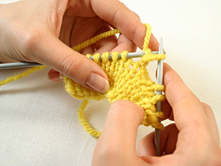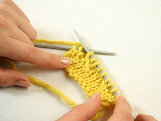 То же самое делают, когда вяжут изнаночный ряд, но нить теперь протягивают на противоположной от себя стороне. При этом нужно сохранять набранное количество петель и провязывать каждую новую петлю, получившуюся из обхвата. Таким способом можно создавать различные рисунки. Обхватывающие могут обвивать одну или несколько петель сразу, располагаясь горизонтально, с наклоном вправо, влево, быть толще, чем основная петля, или такими же.