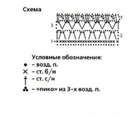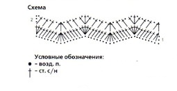 Джинсики можно обновить, связав широкою кайму по схеме, что расположена ниже. А более узенькую кайму следует выполнить по этой же схеме, но нужно провязать всего лишь один первый ряд.
