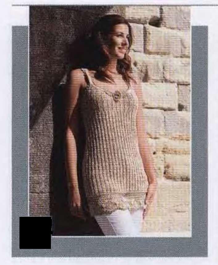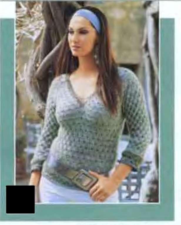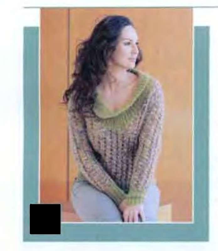Вам потребуется: пряжа Anny Blatt 8/8/9/10/11 мотков Trianon (32% шерсти, 32% мохера. 36% полиамида, 75 м/50 г) оранжево-зеленой меланжевой (1050); 2 мотка (для всех размеров) Fine Kid (51% шерсти. 49% мохера. 250 м/50 г) горчичнои (443), спицы 4 и No 6. Узоры: резинка 2/2. лиц гладь , Фантазийный узор 1-й р лиц п, 2-й р; 1 кром.. "4 изн., 1 накид. 1 кром 3-й р: 1 кром.. *1 накид. спустить накид предыдущего ряда 1 п снять как лиц .'З лиц., накинуть снятую петлю на 3 лиц.', 1 кром. 4-й р изн п. Повторять с 1-го по 4-й р. Плотность вязания, фантазийный узор. Trianon, спицы № 6:16 п. и 18 р =10x10 см Спинка: набрать 66/72/78/84/94 л Fine Kid на спицы N 4 и вязать резинкои 2/2. начиная с 2/ 1/2/1/2 лиц. На высоте 5 см продолжить Trianon на спицах N 6