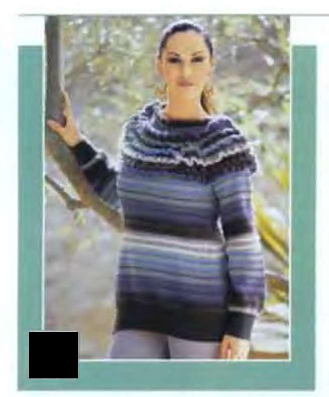 Вам потребуется: пряжа Аппу Blatt. 3 мотка (для всех размеров) Angora Super (70% ангоры. 30% шерсти. 106 м/25 г) шоколадной (638) и 2 мотка (для всех размеров) темно- коричневой (180), 2/3/3/4 мотка Victoria (100% полиамида. 100 м/50 г) сиреневой (917) и 2/2/3/3 мотка темно-сиреневой (739): 2 мотка (для всех размеров) Muguet (100% полиамида. 200 м/50 г) перламутровой (301); пряжа Bouton cl'Or по 4/4/5/5 мотков Baby Superwash (100% шерсти 200 м/50 г) темно- коричневои (576) и серо-фиолетовой (570), по 2 мотка (для всех размеров) серо-зеленой (142). серо-бежевой (558) и светло-зеленой (642), крючок № 3 Узоры: ст б/н. полуст.. ст с/н. Фантазийный узор в полоску: '2 р. ст с/н Baby Superwash темно-коричневой. 2 р. ст 6/н Angora Super темно-коричневой, 2 р ст с/н Baby